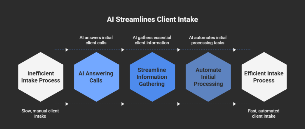 AI client intake uses automation to collect and manage client information efficiently, accurately, and quickly.